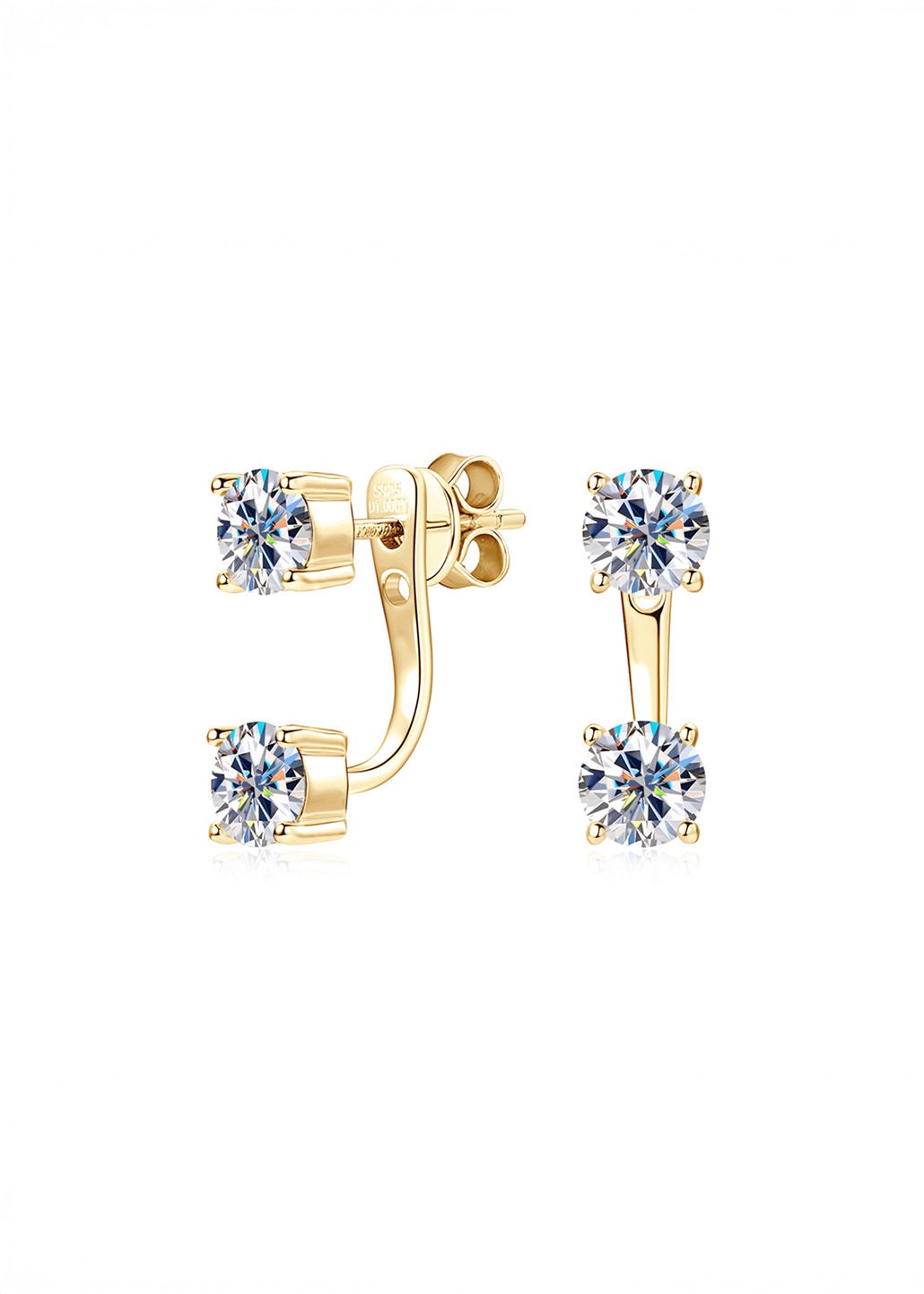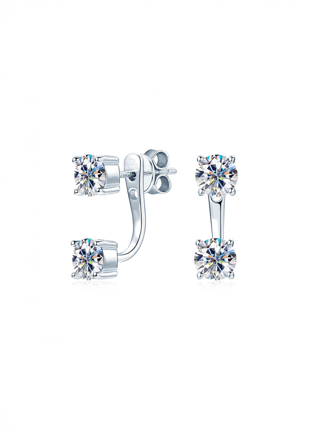 Drop Earrings hechos en plata 925 con un elegante diseño de doble moissanita que le añaden un toque de sofisticación. Cada moissanita de 5 mm está perfectamente engastada, garantizando un brillo excepcional. Estos pendientes cuentan con un recubrimiento electrolítico en oro de 14 quilates para la opción en color oro amarillo, o bien en un elegante acabado en oro blanco para la versión en color plateado. Estos elegantes zarcillos ofrecen un diseño versátil que te permite usarlos de dos maneras: solo con la piedra para un estilo minimalista y clásico, o añadiendo el extensor para un look más moderno y único.